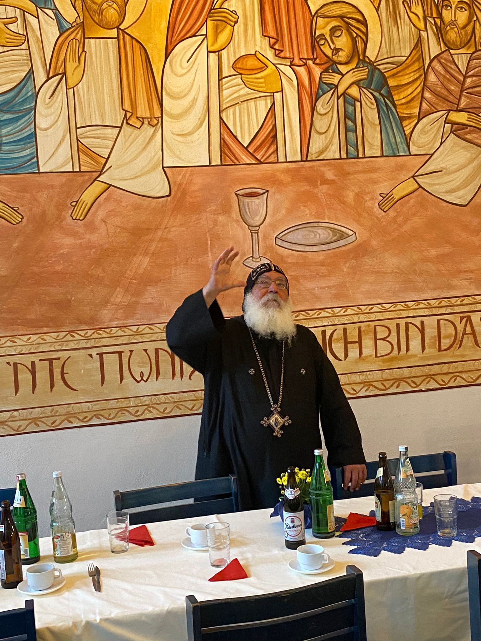 Zu einer Klosterführung lud Bischof Anba Damian am Nachmittag ein. Es war sehr beeindruckend zu sehen, wie diese ökumenische Begegnungsstätte liebevoll und fachkundig restauriert wurde. Der gesellige Abend wurde zusammen mit Bischof Damian, der seinen Humor bewies, im gegenüber liegenden Restaurant verbracht.
